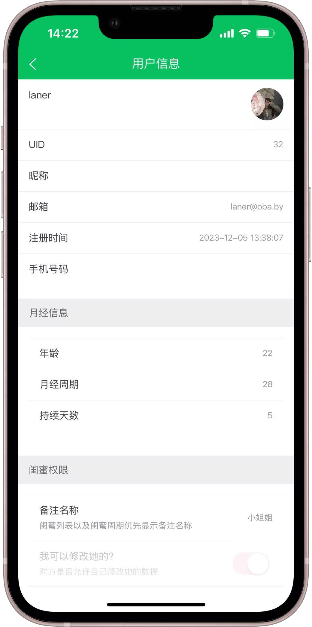 不管是自己的周期数据,还是闺蜜的周期数据,都了如指掌。针对特殊情况可以共同交流沟通,为闺蜜提供更体贴的照料。